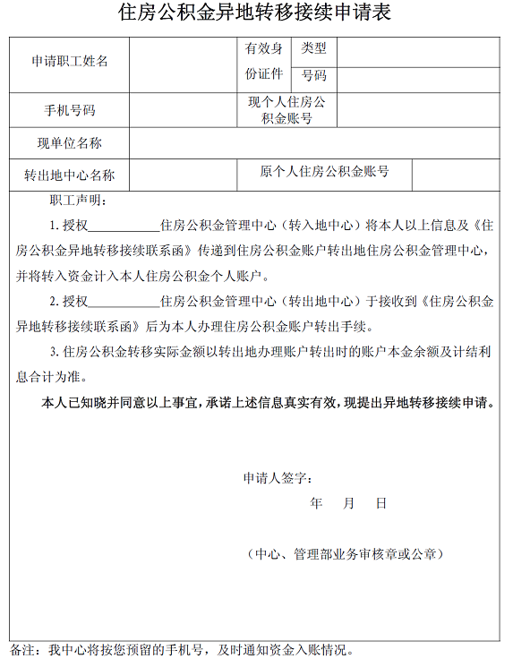 住房公积金异地转移接续申请表